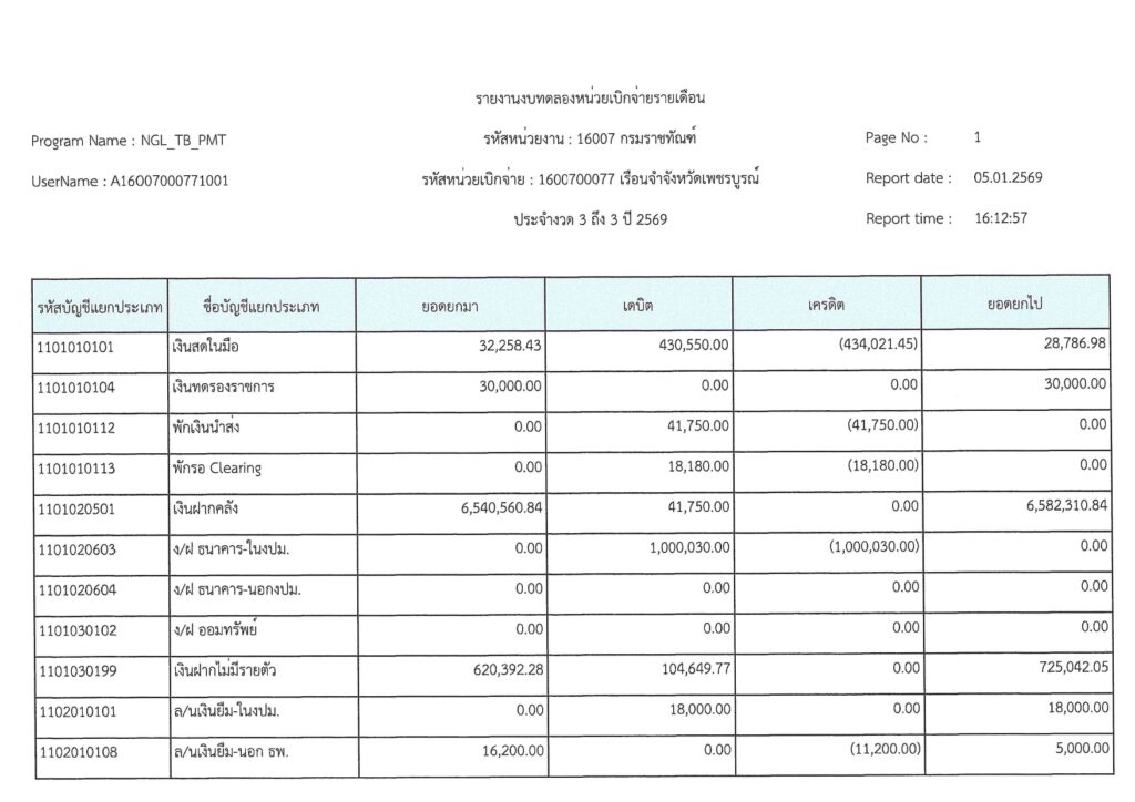 รายงานงบทดลองการเบิกจ่าย เดือน มกราคม 2569