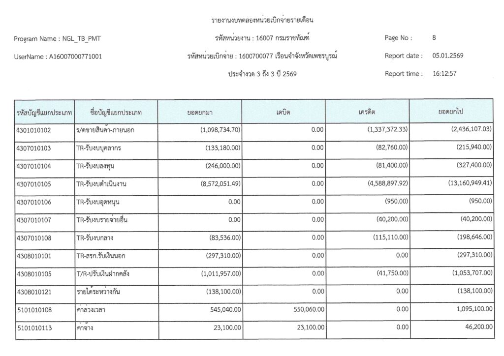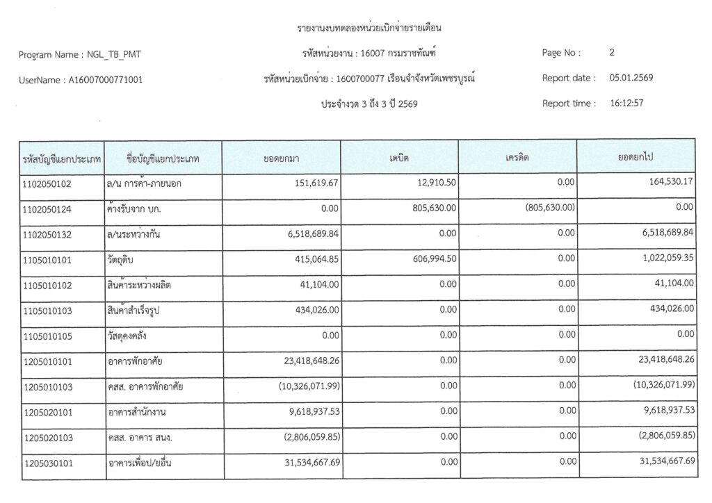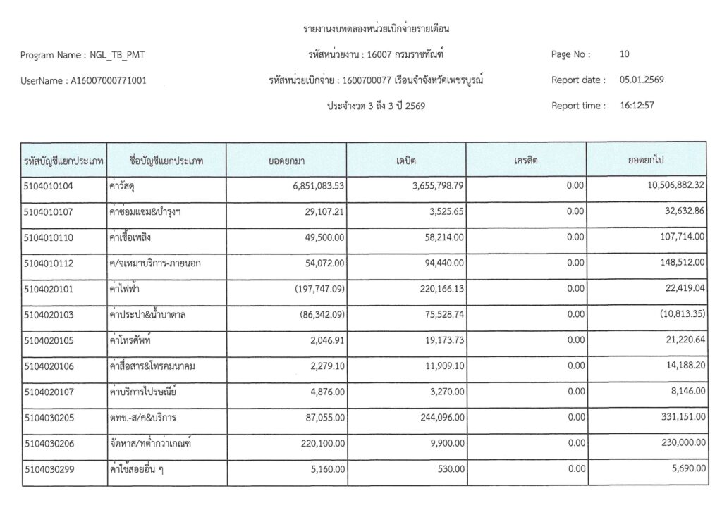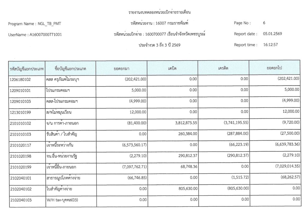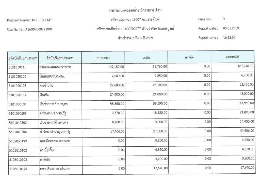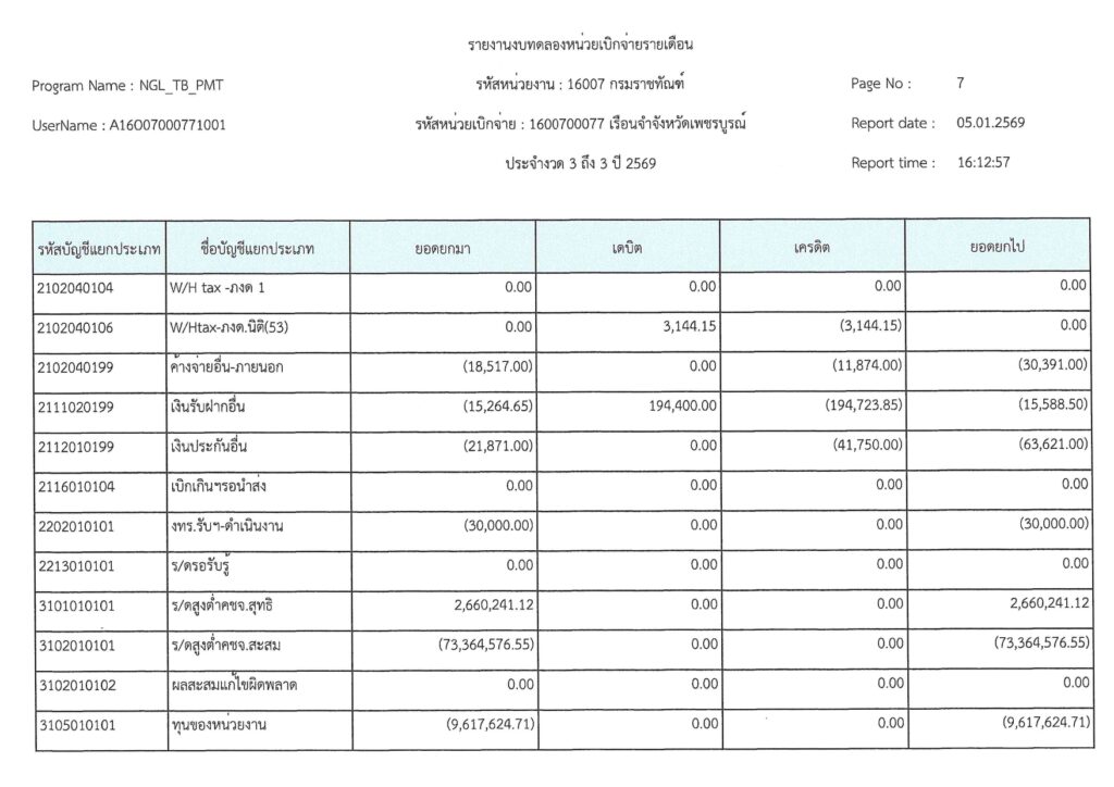 รายงานงบทดลองหน่วยเบิกจ่าย เดือน ธันวาคม 2569