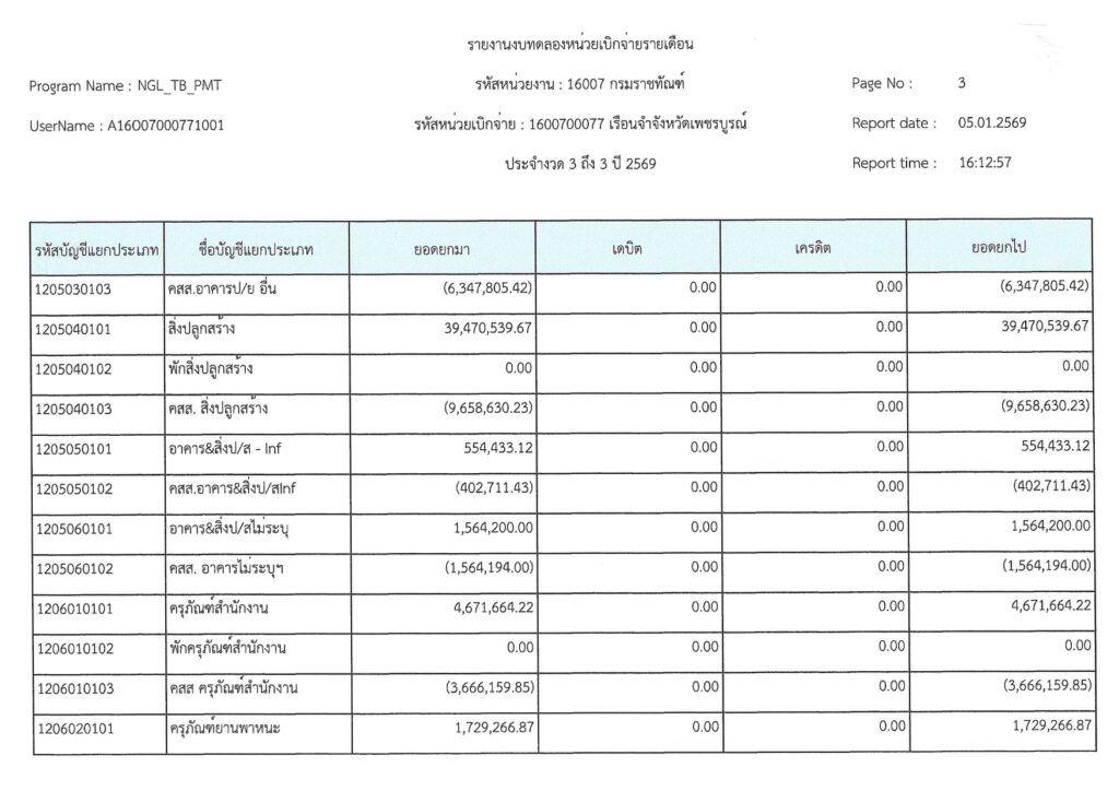 รายงานงบทดลองเบิกจ่ายรายเดือน ธันวาคม 2569