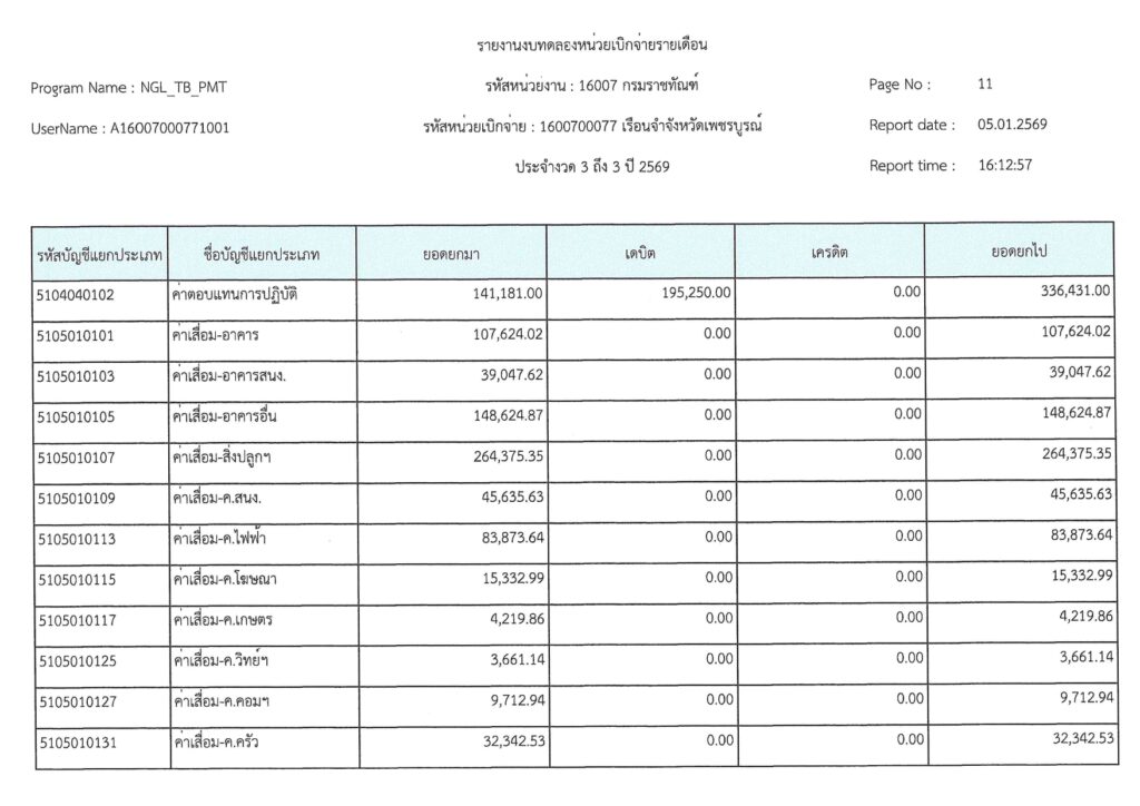 รายงานงบทดลองหน่วยเบิกจ่าย เดือน พฤศจิกายน 2568