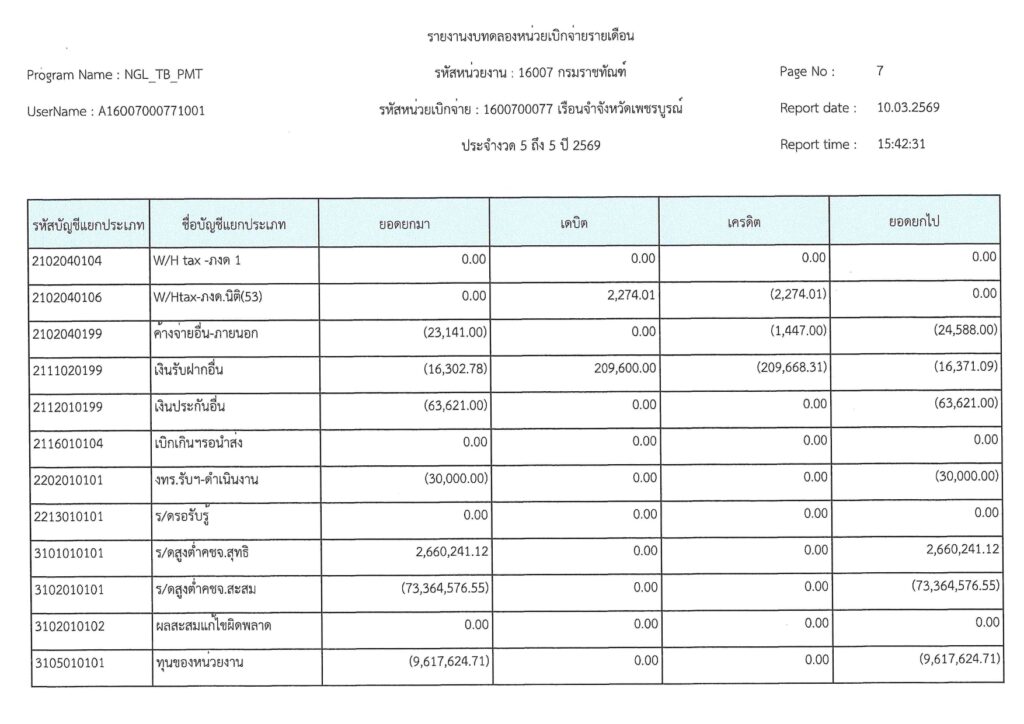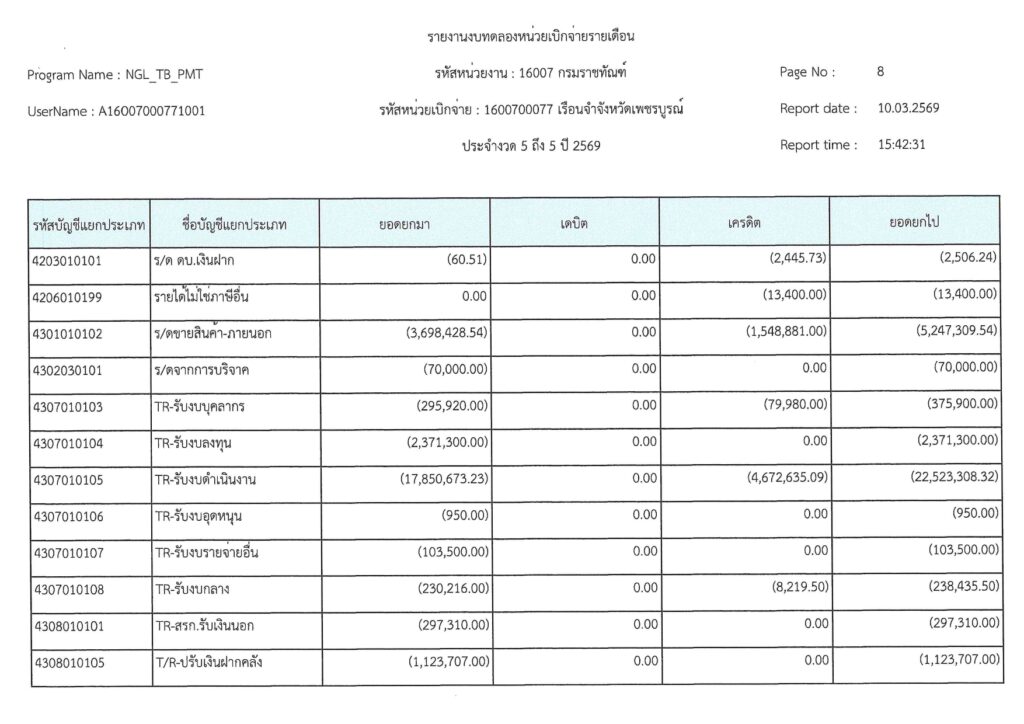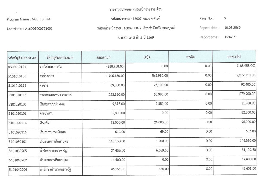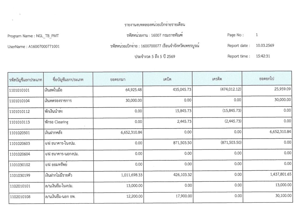 รายงานงบทดลองเบิกจ่ายรายเดือน มีนาคม 2569