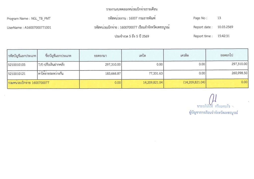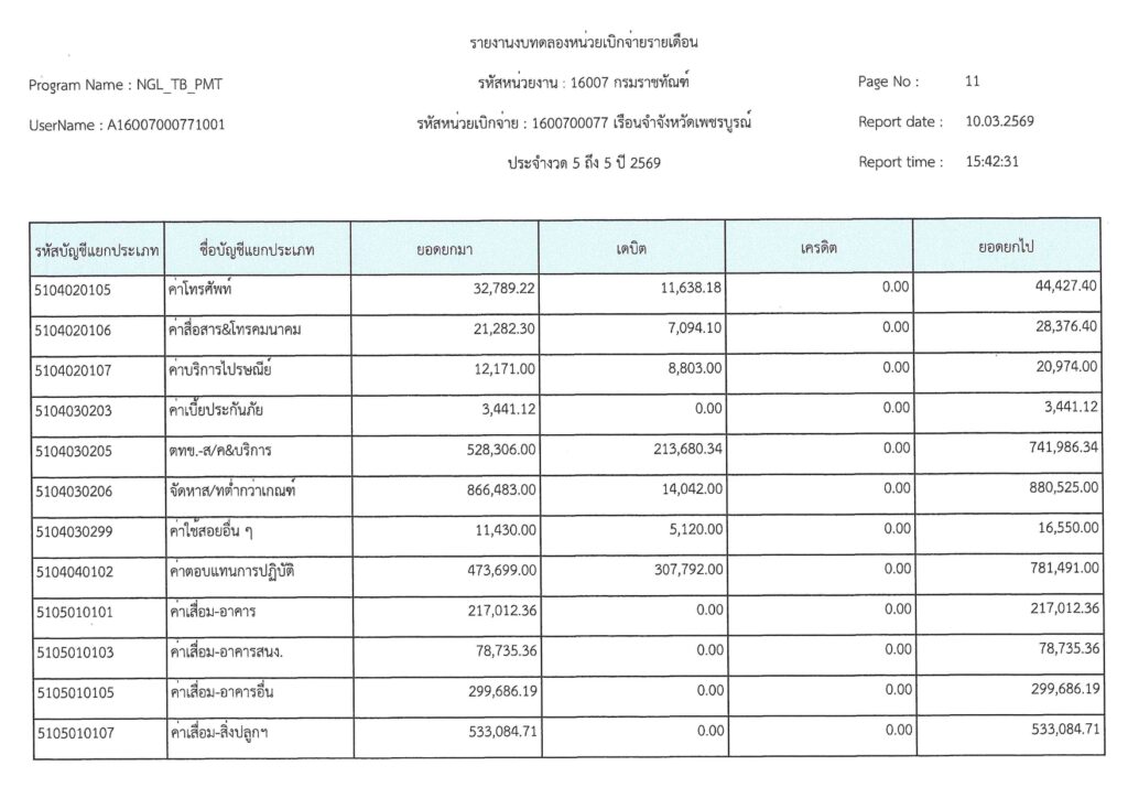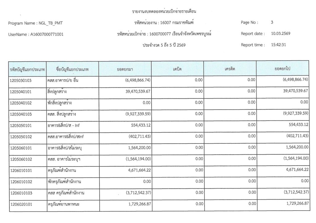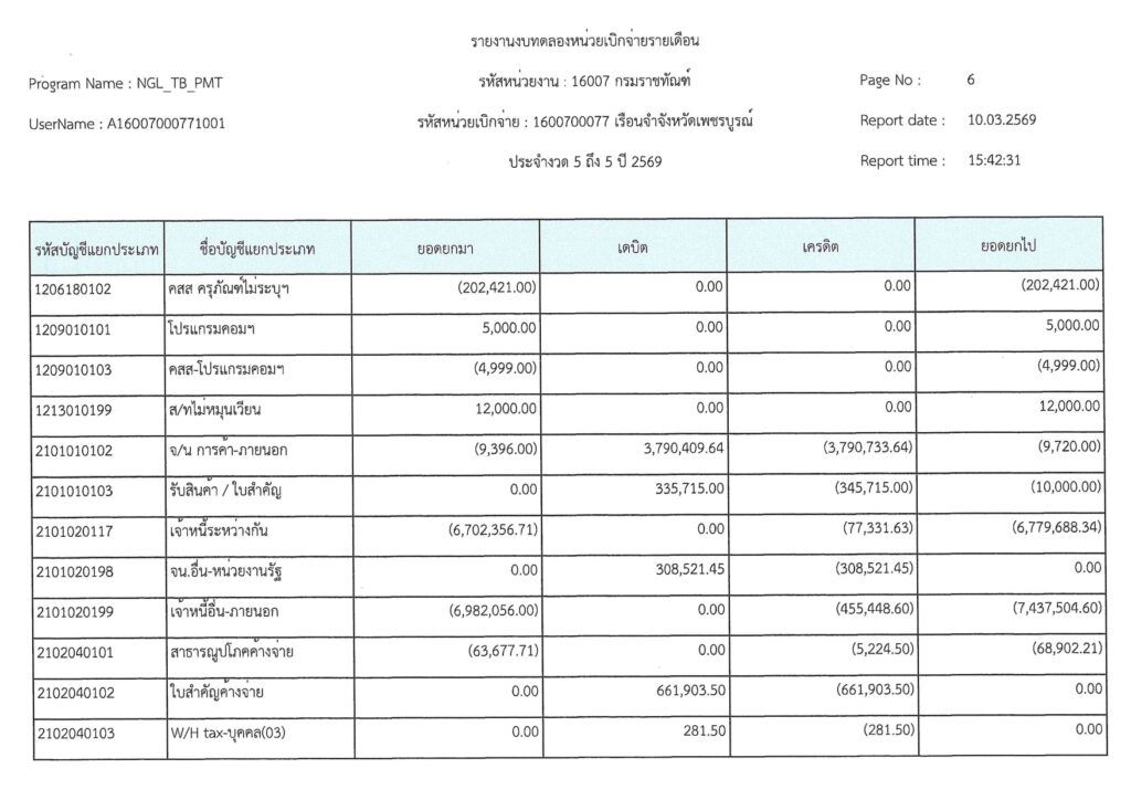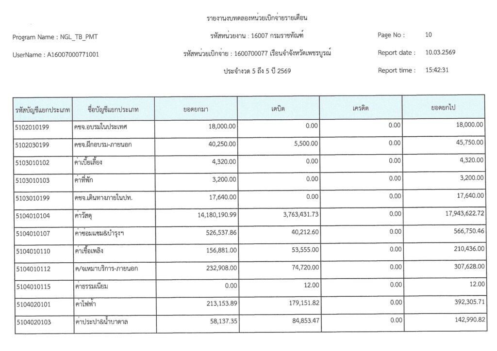 รายงานงบทดลองเบิกจ่ายรายเดือน มีนาคม 2569