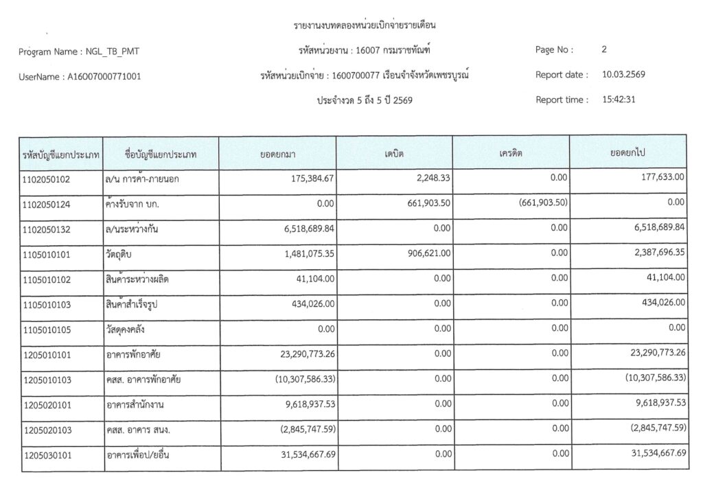 รายงานงบทดลองเบิกจ่ายรายเดือน กุมภาพันธ์ 2569