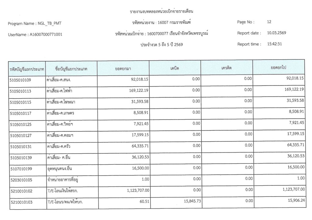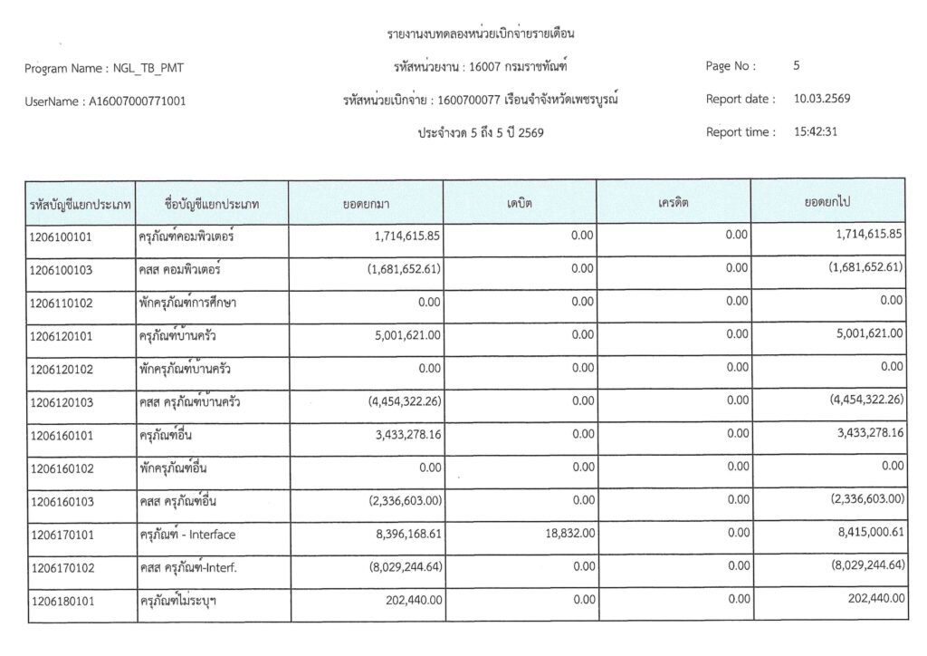 รายงานงบทดลองเบิกจ่ายรายเดือน